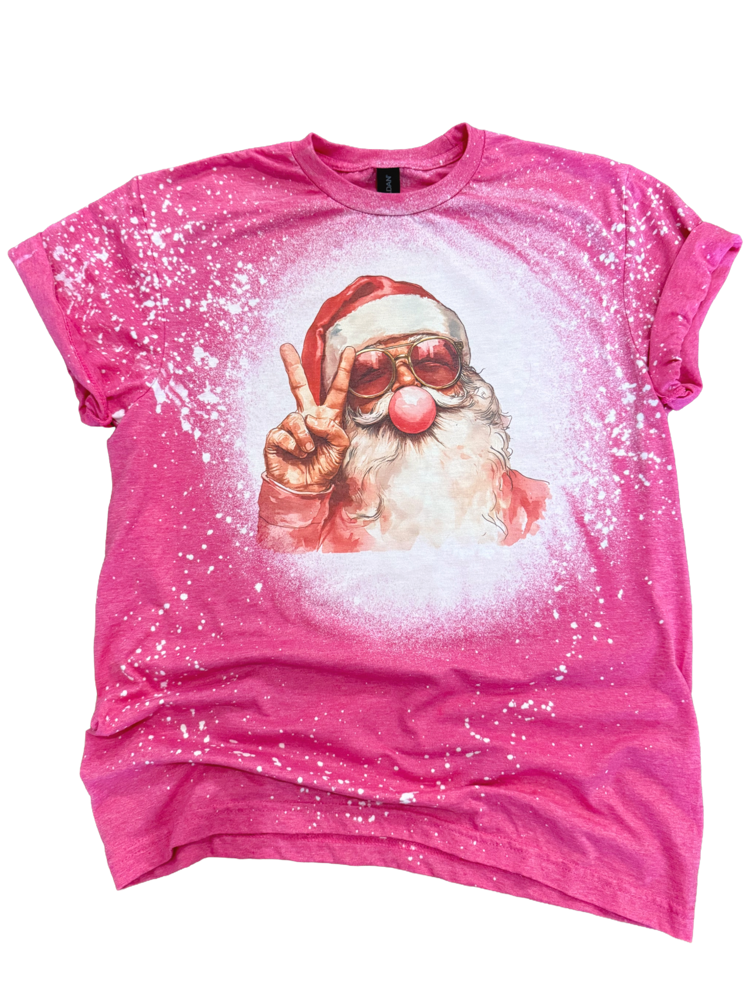 If your holiday spirit comes with a side of sass and a dash of bubblegum pink, this tee is your new festive uniform. Retro Santa’s throwing peace signs and popping bubbles like he owns the North Pole... because, let’s be real, he kinda does.