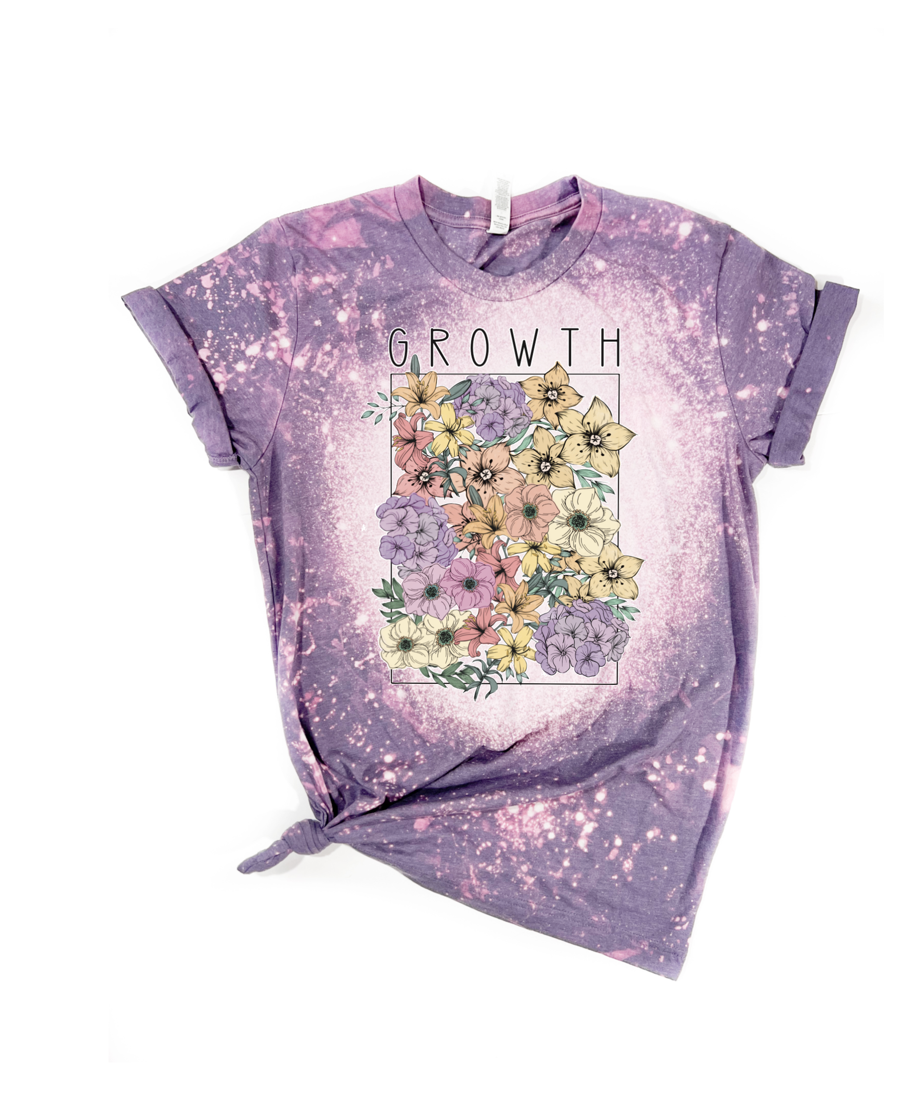 Get inspired to grow in our Growth Floral Inspiring Bleached Tee. This comfy and beautiful shirt will surely make you bloom. Perfect for anyone looking for a unique and playful addition to their wardrobe. Just like your plants, it needs some love and care too.