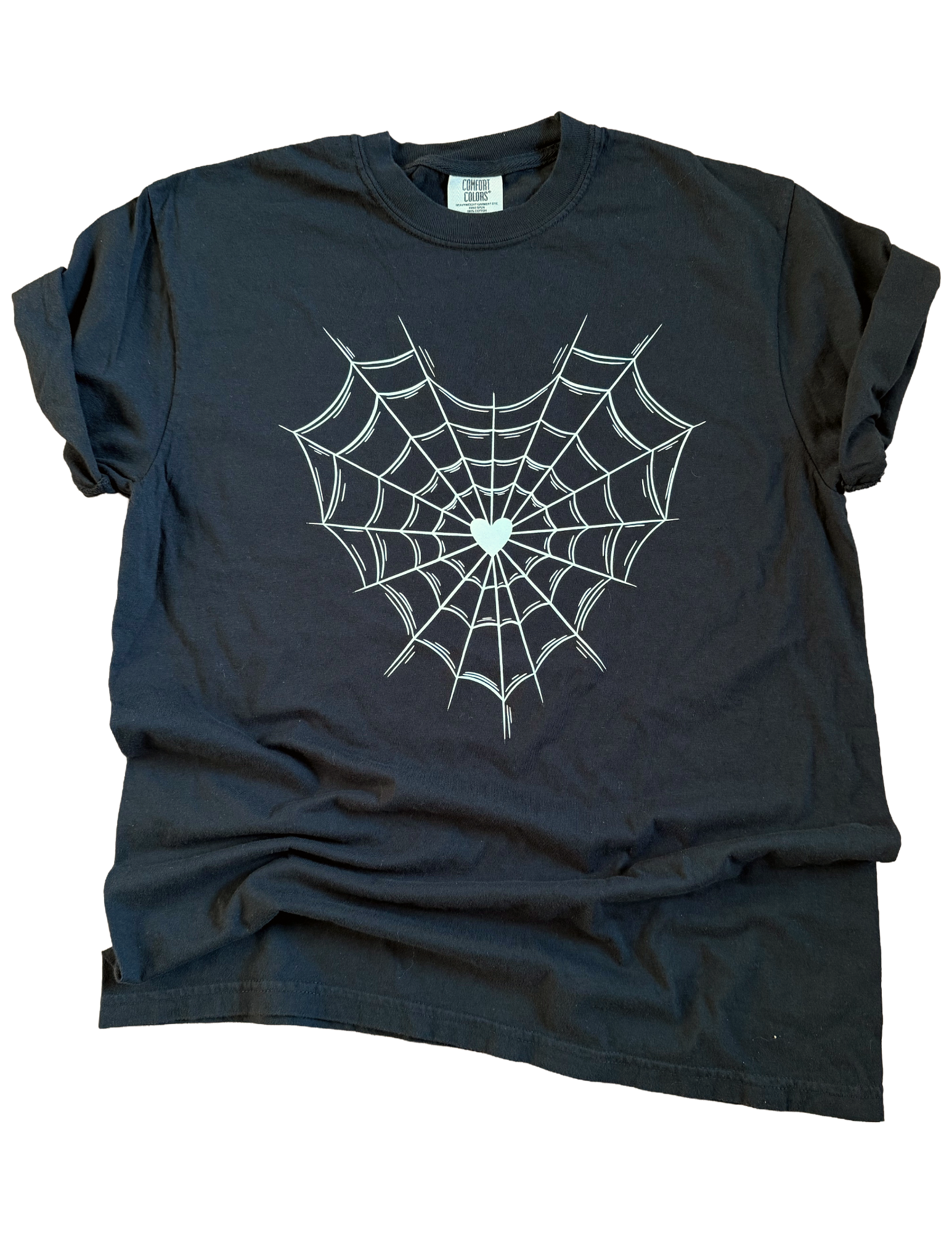 Love bites, and this tee proves it. A spiderweb in the shape of a heart sits front and center—equal parts spooky romance and dark aesthetic. Perfect for anyone who’s ever fallen for someone a little toxic (or just really digs Halloween year-round).
