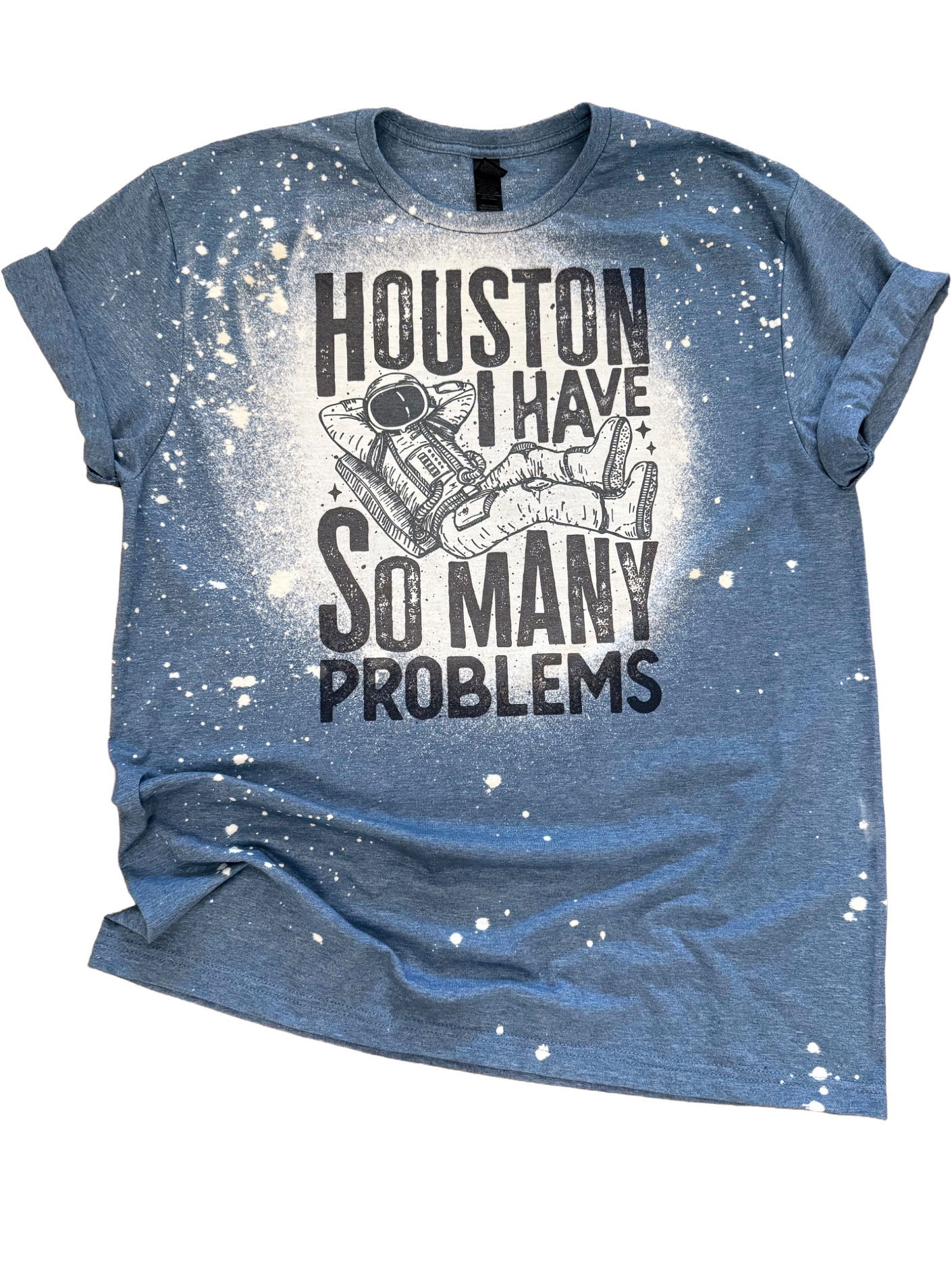 For anyone who’s ever felt like they’re floating through life with a few too many issues to count. This distressed blue bleached tee features a chill astronaut paired with the painfully relatable words: Houston, I Have So Many Problems.Funny, sarcastic, and just the right amount of dramatic.