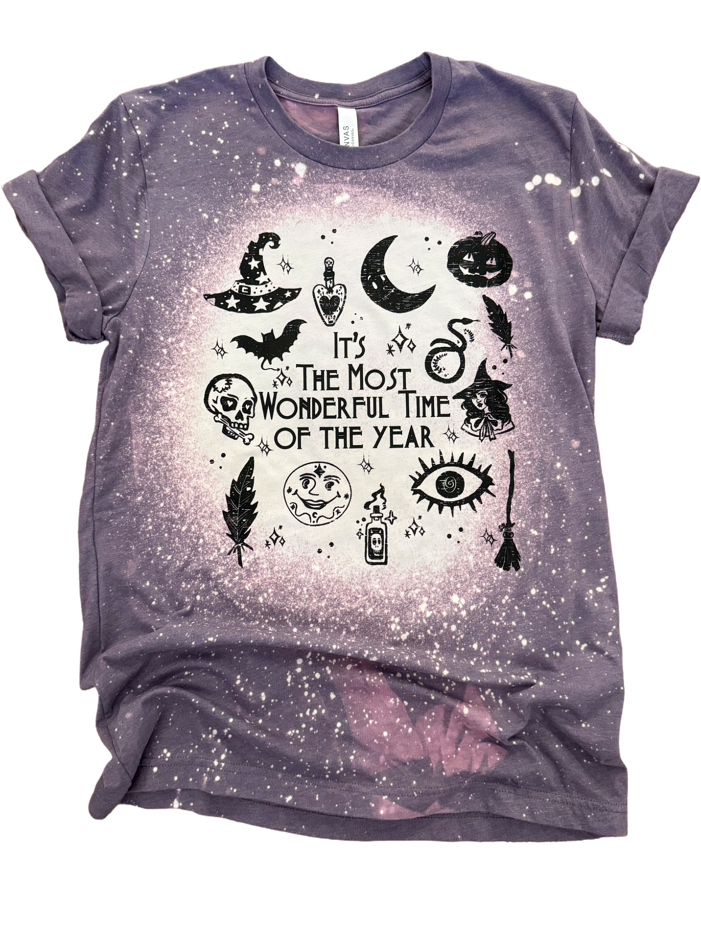 Move over jingle bells—bring on the bats, broomsticks, and black cats. This purple bleached tee says what every spooky soul already knows: fall is the true most wonderful time of the year. With witchy symbols and vintage vibes, it’s the perfect shirt for sipping cider, carving pumpkins, and planning your next haunting. 🎃✨