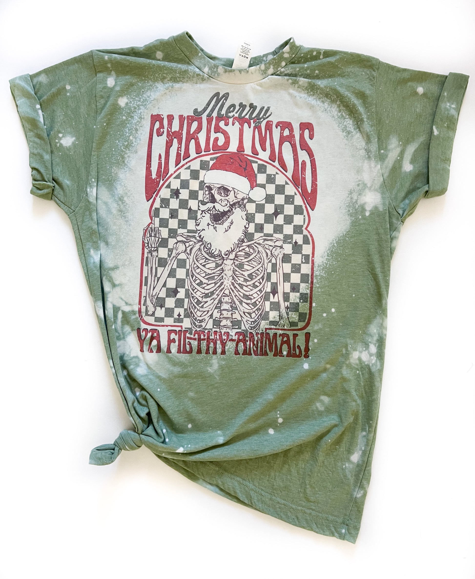 Merry Christmas Skeleton Vintage Bleached Christmas Tee