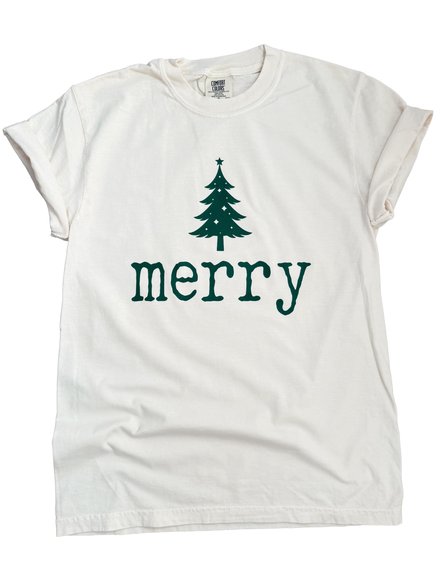 🎄✨ MERRY – Minimalist Christmas Tree Tee