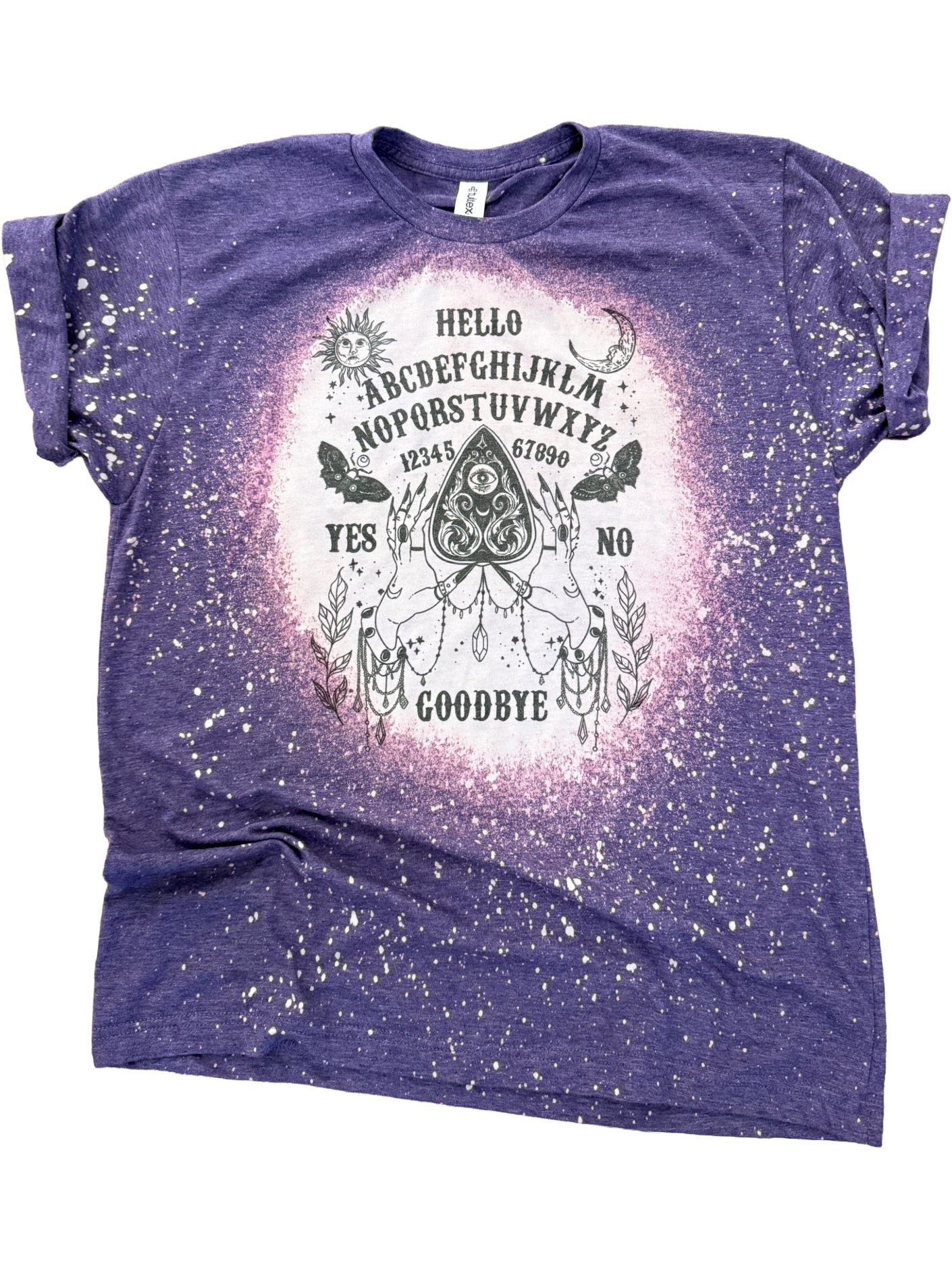🖤 This bleached purple tee is channeling something spooky with its vintage ouija design—complete with celestial symbols, gothic lettering, and a whole lot of witchy energy. Soft, comfy, and ready to say YES to your next look.