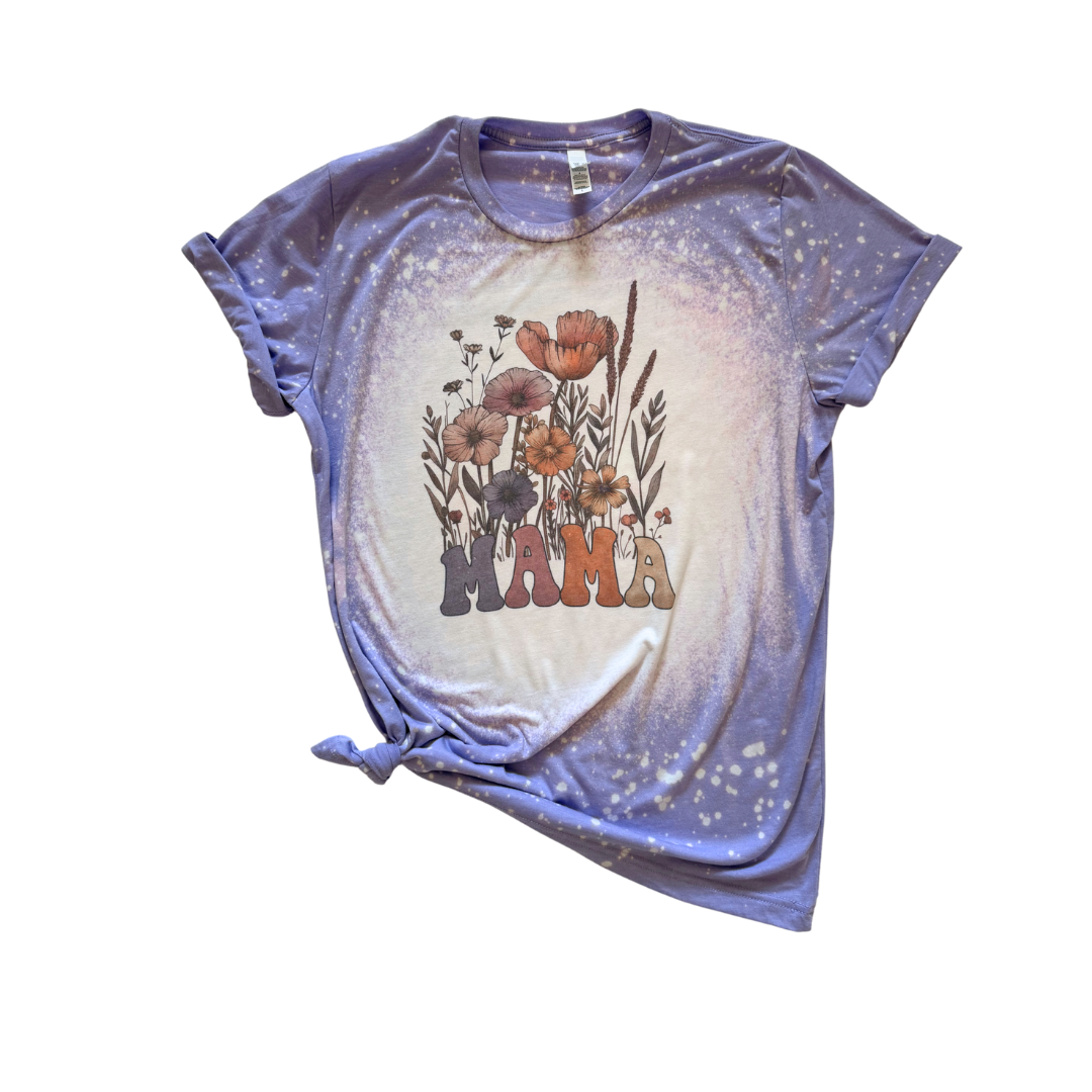 Celebrate the beauty of motherhood with our Mama Wildflower Bleached Tee. Featuring a boho-inspired floral design with retro-style lettering, this soft and breathable tee is perfect for all the strong, nurturing, and free-spirited mamas out there. Hand-bleached for a one-of-a-kind distressed look, it's the ultimate blend of comfort and style.
