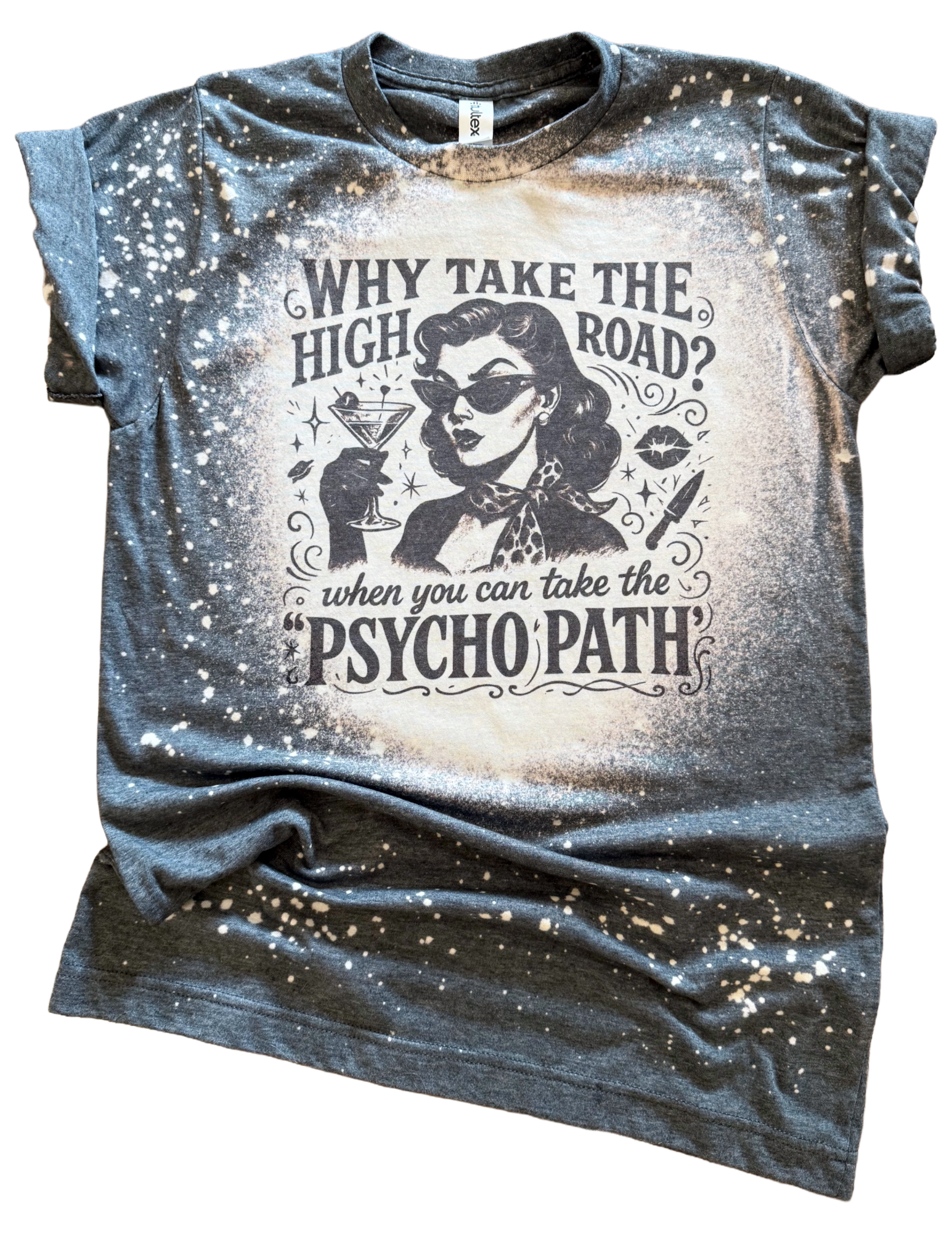 Why play nice when you can play psycho? This tee is for the ones who choose sarcasm over silence and cocktails over conflict resolution. With retro pin-up art and a perfectly bleached backdrop, it’s the unapologetic uniform for your unbothered villain era.